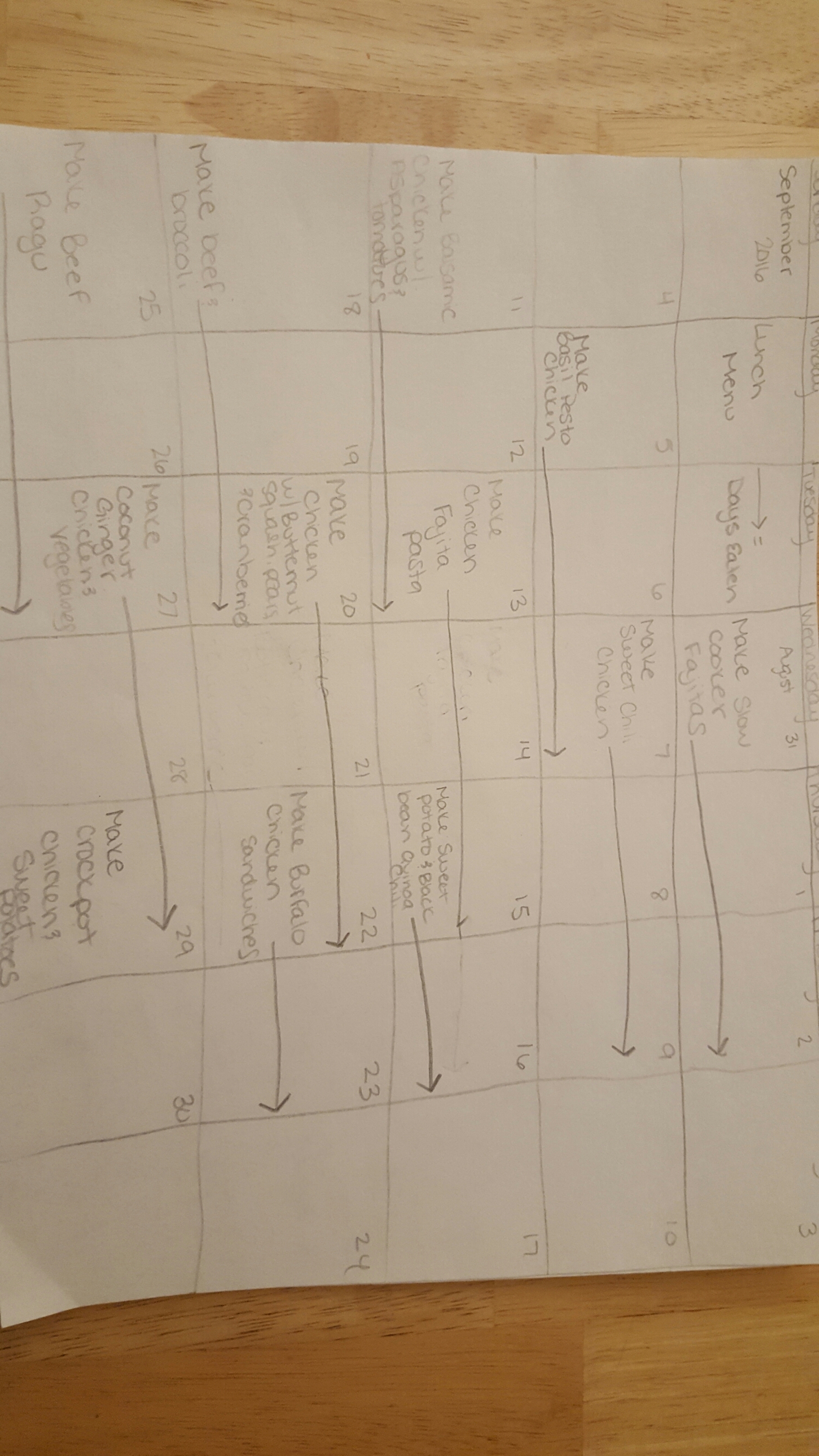 Meal planning has become a hobby of mine and a passion. Ask any member of my family, it’s something I can’t shut up about. I’m trying to convert the non believers in my life and get them to give into the power of a menu. Earlier in August I actually sat down and planned out my dinners and lunches for September. I’m actively trying to continue to trim our budget and to do that I have to be very conscious of the meals I plan. Health is a big factor two…. I’m two months postpartum and somehow I’ve gained weight… I have been great about planning dinners but fell short planning lunches and I’ve eaten more peanut butter sandwiches then I’m proud to admit in the last few weeks. I’m currently dairy free so even more planning has been required.