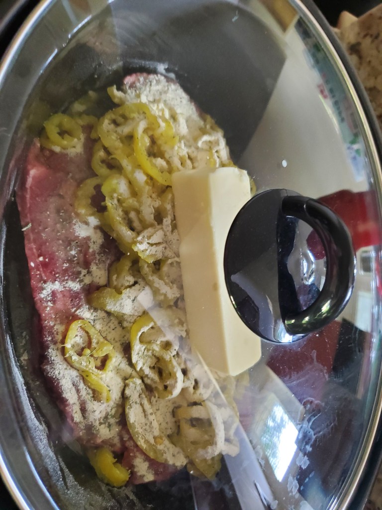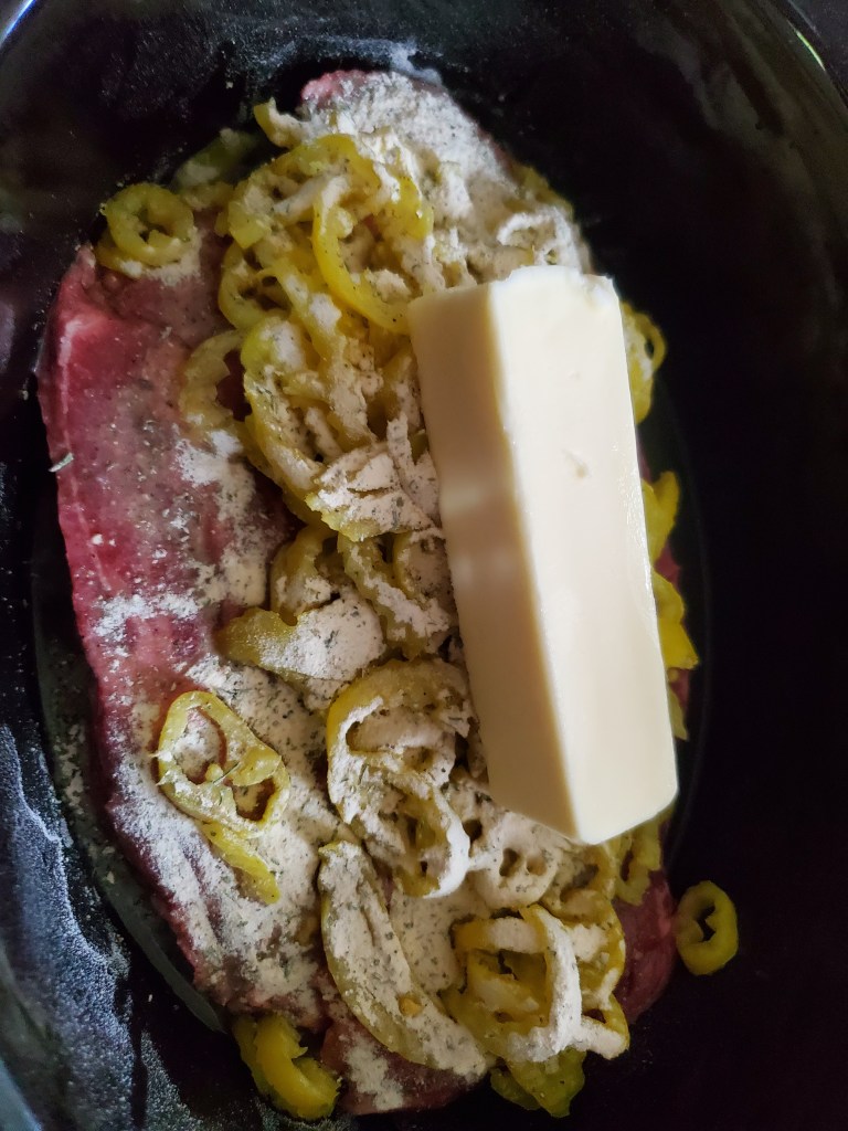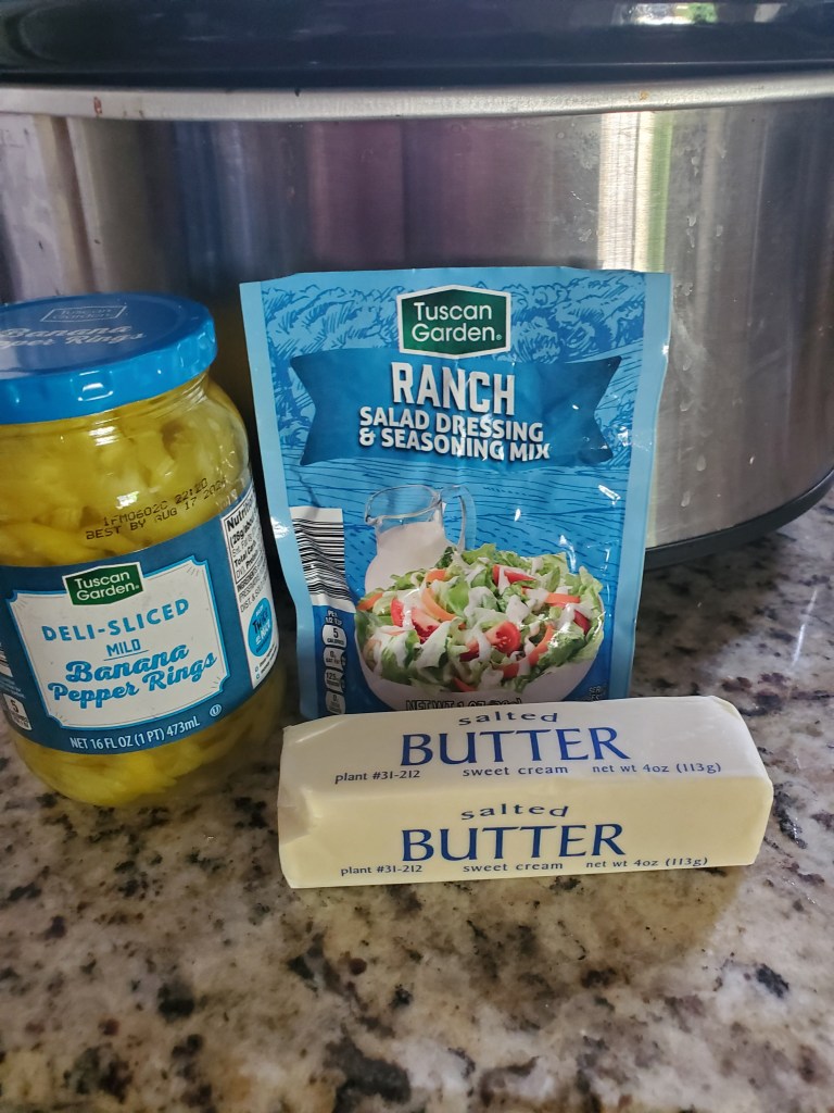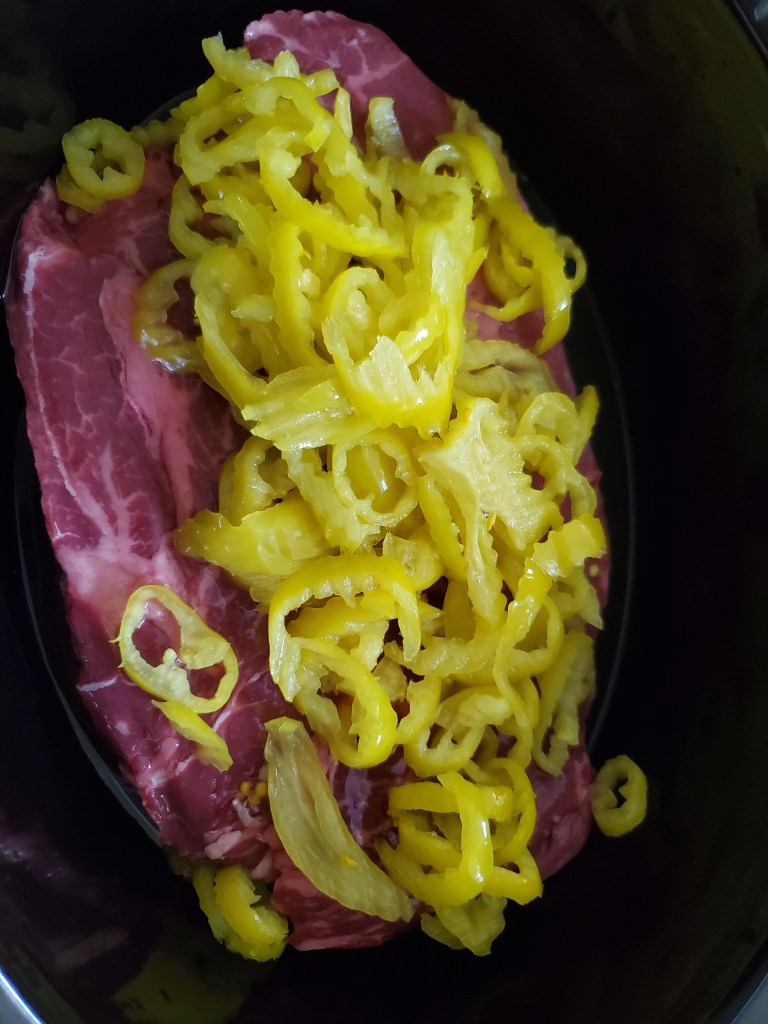 Banana peppers ( this is in place of the peppercinos. It still helps tenderize the meat and add some zest without the heat)