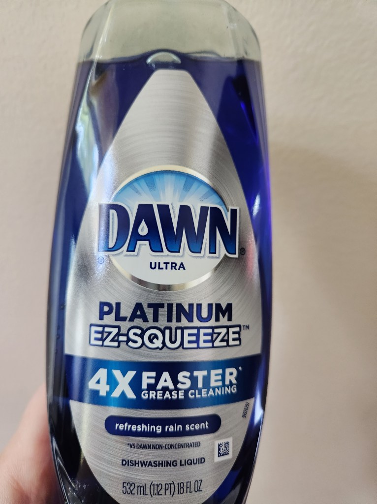 I used Dawn for this. I like Dawn. Gain is also a brand I like however I could not find all the options and I wanted to use the same brand for this. I have tried almost every detergent. Dawn works. Also my hands are used to it so I don’t get dry skin when I use…should I use gloves… probably…do i… no.