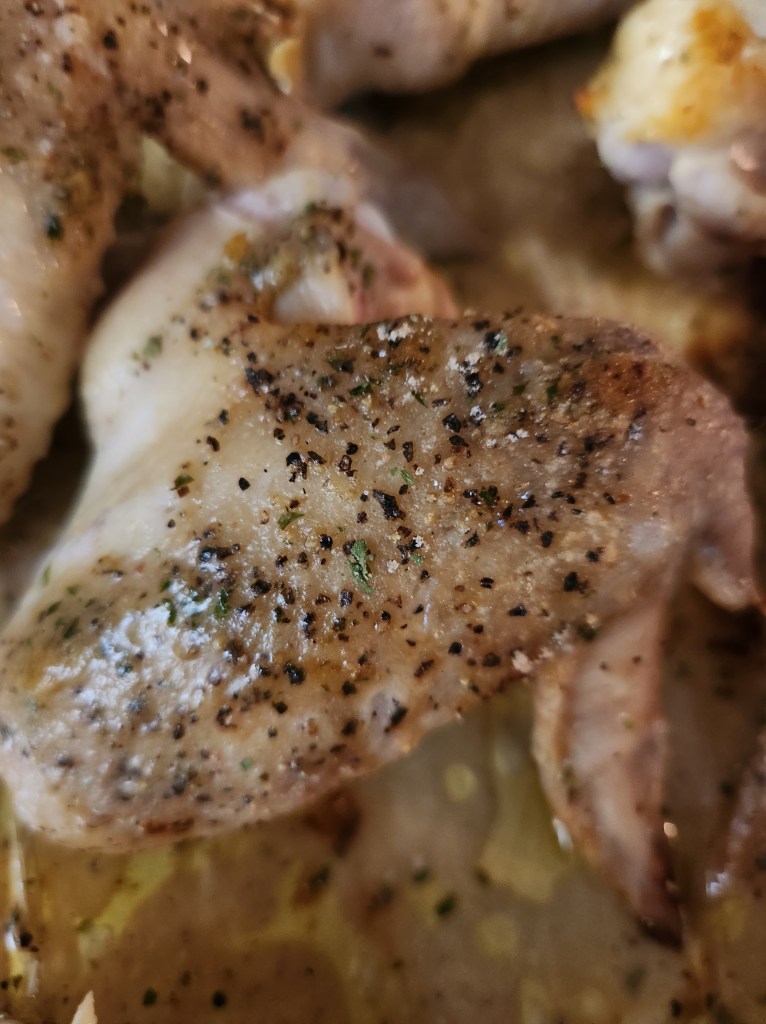 Spread chicken wings on the pan. Or on my case just kind of plop them on it.