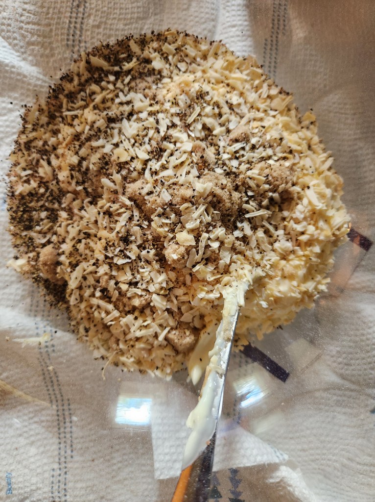 To a bowl I tossed in some mayo , more dehydrated onions ( I wouldn’t do again they are bit crunchy in not a good way) some salt pepper and brown sugar.