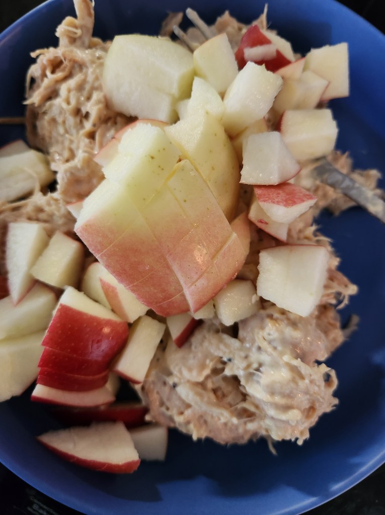 I served with a cut up apple. I don’t like to add my apples in ahead of time as I don’t want them to brown and I want them nice and crispy…the good kind of crispy.